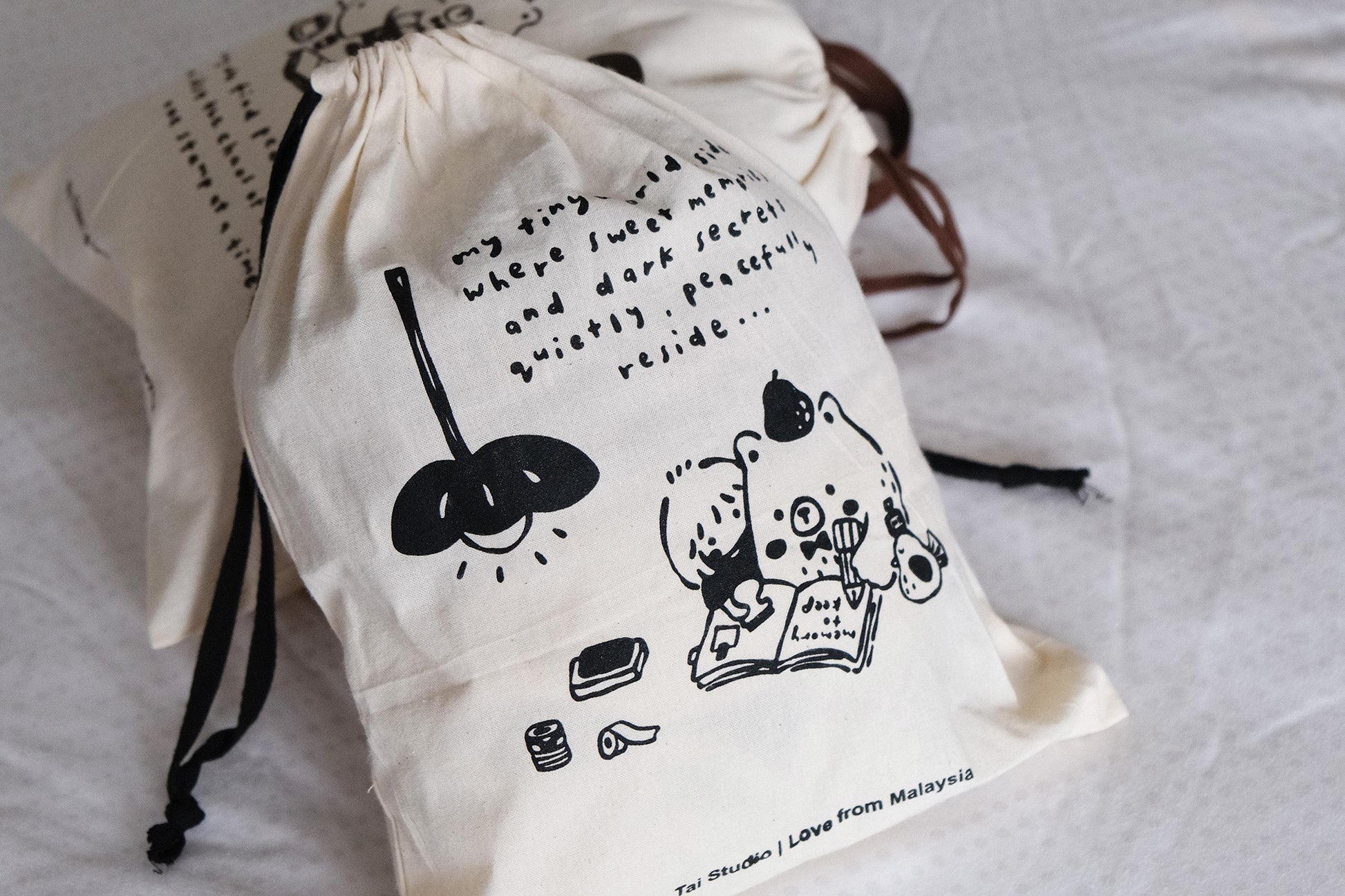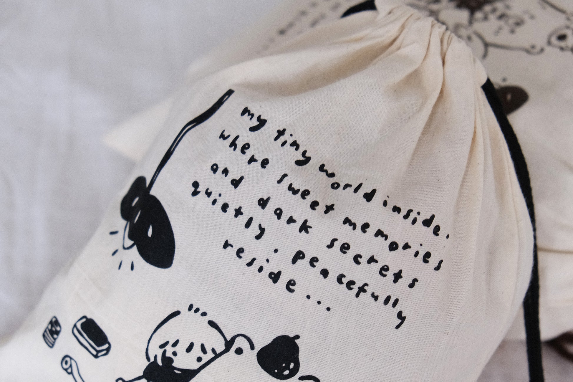 Eileen Tai Drawstring Pouch - My Tiny World Inside (Black)