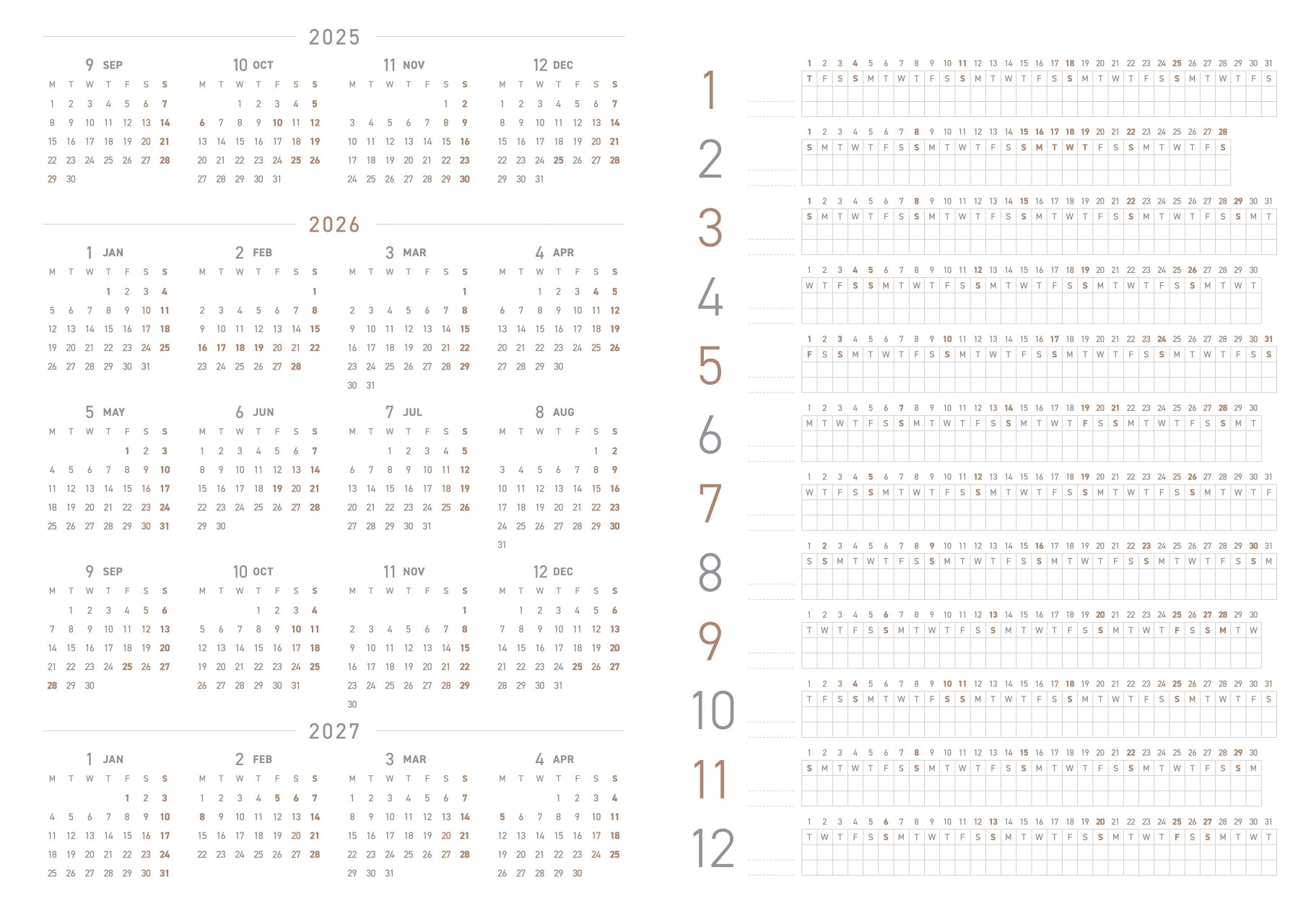 ● Yearly Calendar【Sep 2025 – Apr 2027】 (1P)