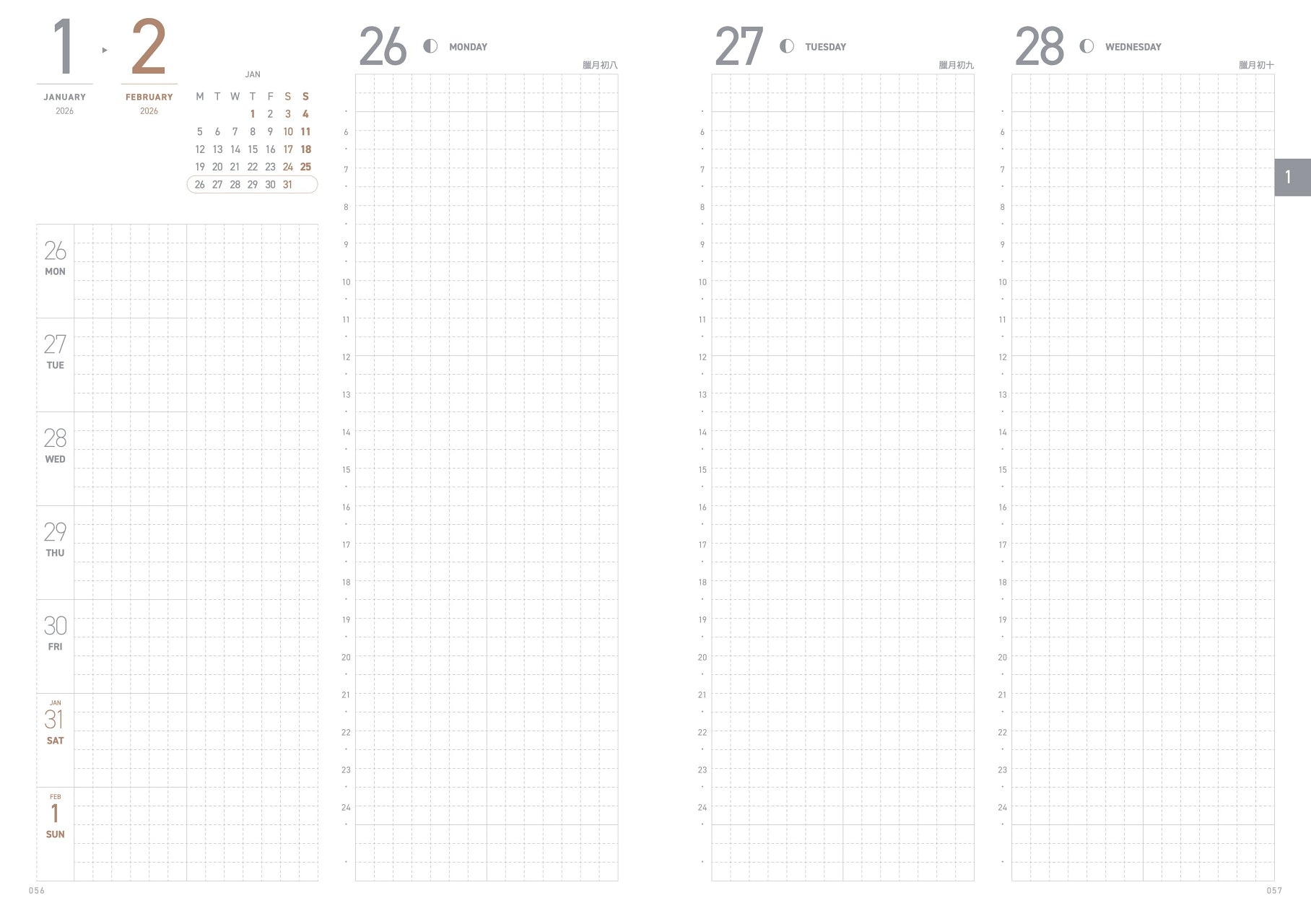 ● Weekly Plan 【Jan 2026 – Dec 2026】 (212P) / Two Days per Page, Four Pages per Week. Weekdays in English (Mon–Sun)